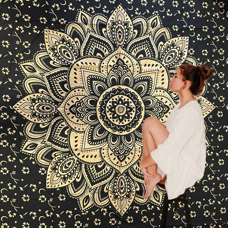 MANDALA FLOR DE LOTO NEGRO Y DORADO